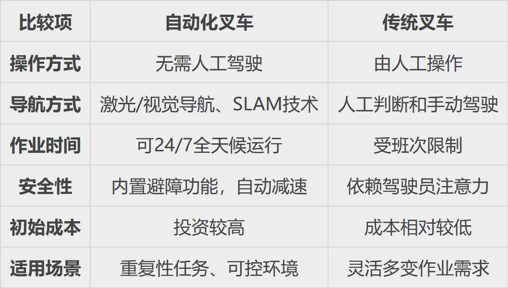 随着物流与制造行业的持续升级,理解自动化叉车与传统叉车之间的区别对企业至关重要。传统叉车具备灵活、成本低的特点,而自动化叉车则在效率、安全性与智能化程度方面更具优势。