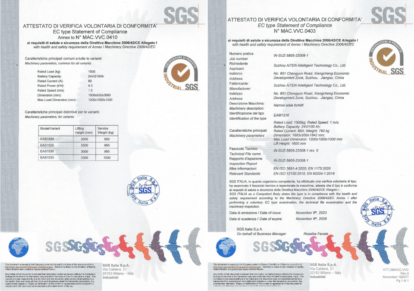 3. CE 标志(欧盟): 确保符合机械指令,强调对繁忙仓库等动态环境的风险评估,在这些环境中,叉车与行人和手动设备相互作用。为满足欧洲市场的法规要求,yabo.com产品经过严格审核,为包括 MP10、AM1516、AE15、AS15 和其他产品在内的 AGV 产品获得了欧盟 CE 证书。